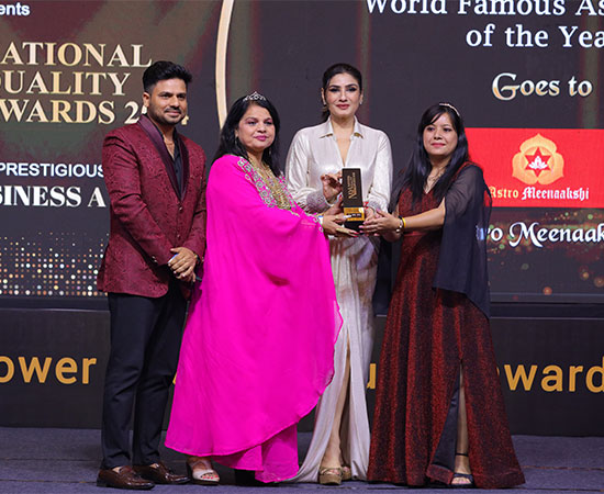 Receiving the World Famous Astrologer of the Year award at the NQA 2024 reflects the outstanding achievements of Astrologer Dr. Meenaakshi Sharma, who has transformed countless lives through her deep astrological wisdom and guidance. The recognition is not just an honor but a symbol of excellence, integrity, and trustworthiness in her field. By honoring her with this prestigious award, NQA highlights how extraordinary individuals stand out in their respective domains and contribute positively to society. This award signifies that Dr. Meenaakshi Sharma’s work in astrology is not only celebrated but also respected on a national platform.